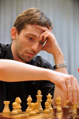 GM Alexander Grischuk (bildet) overtok ledelsen i det russiske mesterskapet etter sin seier i 5.runde mot GM Alexander Riazantsev. Samtidig tapte nemlig ledende GM Peter Svidler mot overraskelsesmannen GM Sanan Sjugirov. Dermed leder Grischuk på 3,5 av 5 foran Nikita Vitiugov, som overrasket med en sterk seier med svart mot GM Dmitry Jakovenko i dag, og nevnte Svidler som har tre poeng.